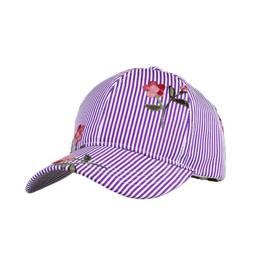 Stripe Print with Floral Embroidered CC Ball Cap BA748