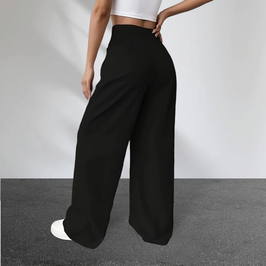 Solid Button High Waist Front Pleated Straight Leg Pants